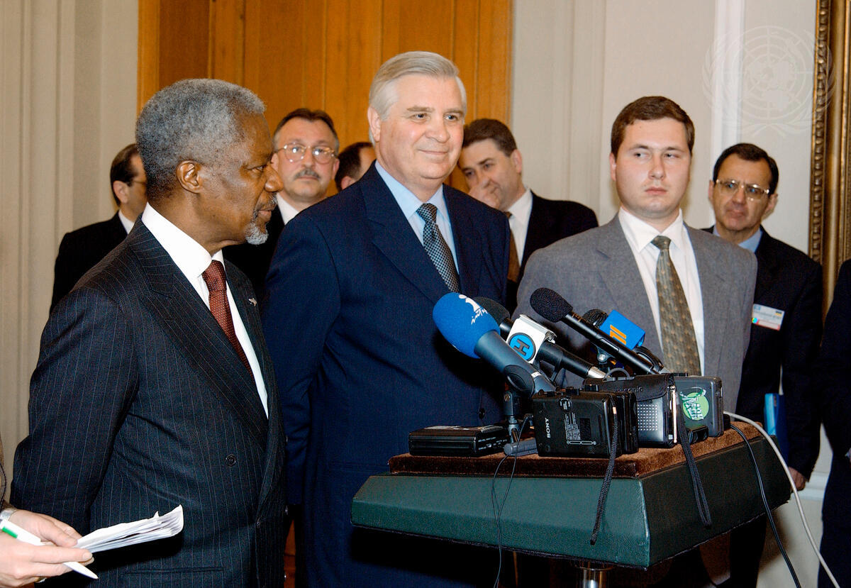 Secretary-General Kofi Annan (left) visiting the Chernobyl Museum in Kiev.