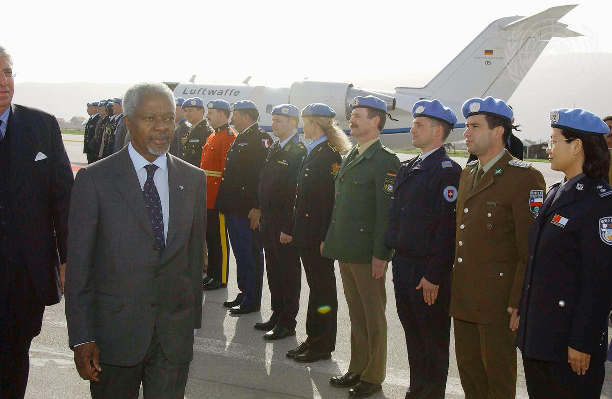 Secretary-General Kofi Annan (left) arriving in Sarajevo.
