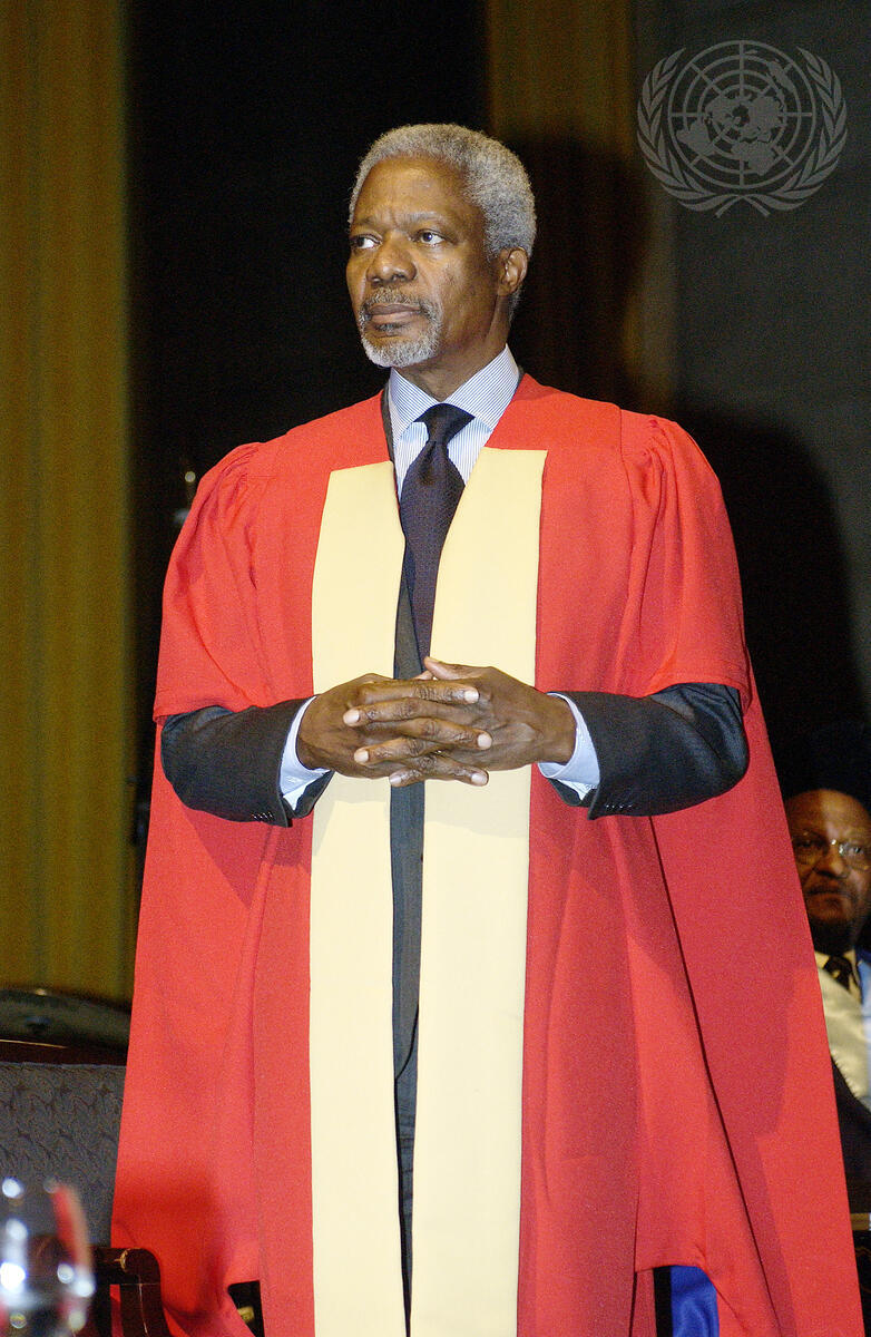 Secretary-General Kofi Annan received an Honorary Degree of Doctor of Laws from the University of Cape Town this evening at a Special Graduation Ceremony organized by Graca Machel, Chancellor of the University of Cape Town, and wife of former South African President Nelson Mandela.