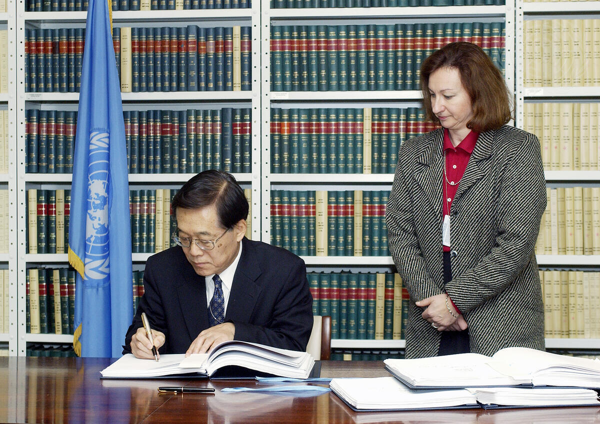 Caption Description Koichi Haragughi, Permanent Representative of Japan to the United Nations, signed the following protocols at UN Headquarters today: Protocol To Prevent, Suppress And Punish Trafficking In Persons, Especially Women and Children, Supplementing The United Nations Convention Against Transnational Organized Crime; Protocol Against The Smuggling of Migrants By Land, Sea and Air, Supplementing The United Nations Convention Against Transnational Organized Crime;  Protocol Against The Illicit Manufacturing Of And Trafficking In Firearms, Their Parts And Components And Ammunition, Supplementing The United Nations Convention Against Transnational Organized Crime.