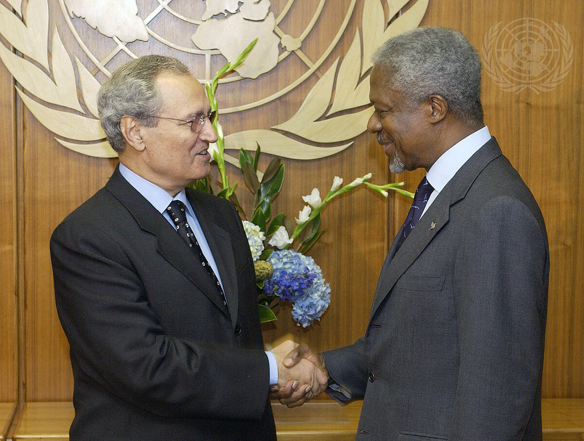 Secretary-General Kofi Annan (right) meeting with Farouk al-Sharaa, Minister for Foreign Affairs of the Syrian Arab Republic.