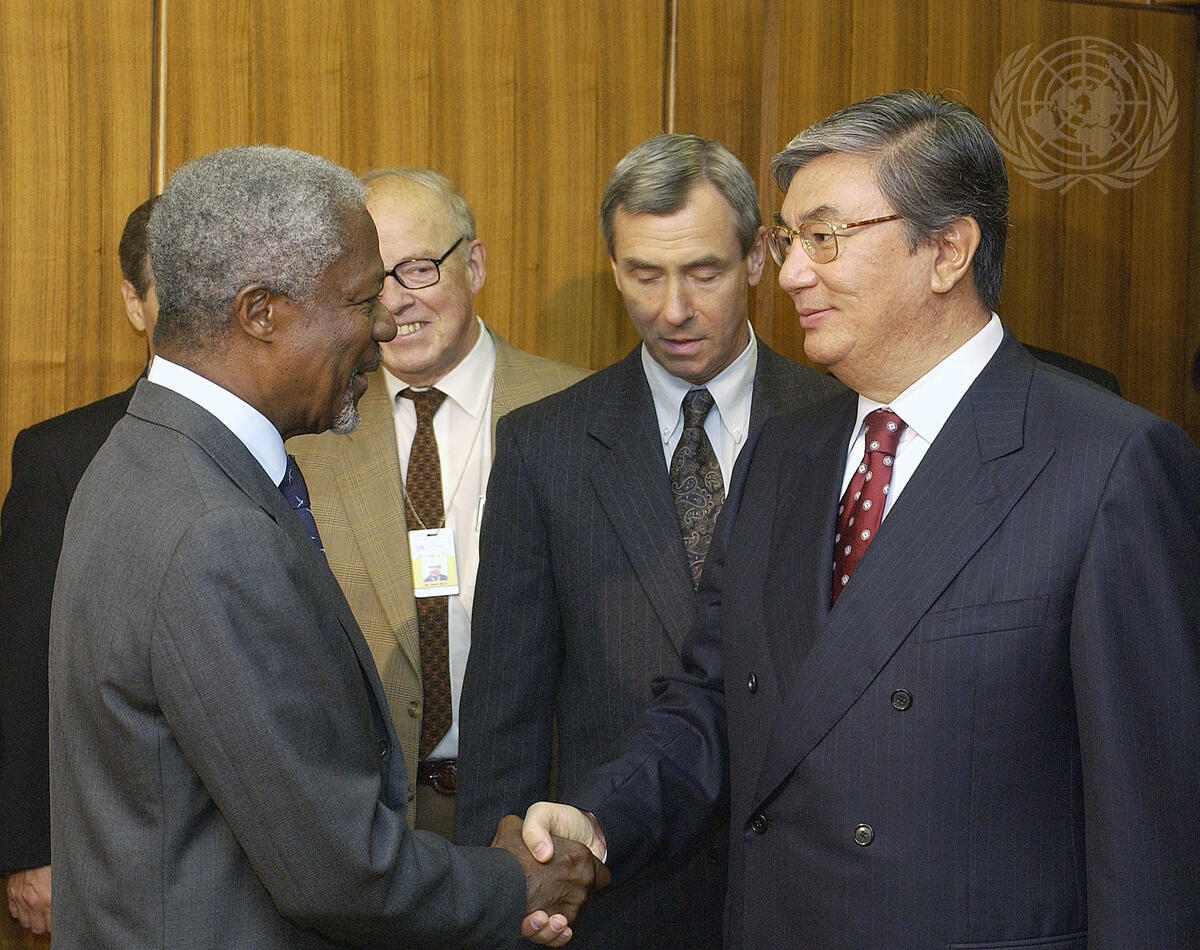 Secretary-General Kofi Annan (left) meeting with Kassymzhomart K. Tokaev, Minister for Foreign Affairs of the Republic of Kazakhstan.