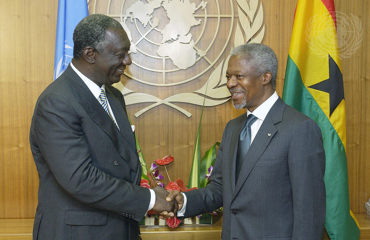 Secretary-General Kofi Annan (right) meets with John Agyekum Kufuor, President of Ghana.