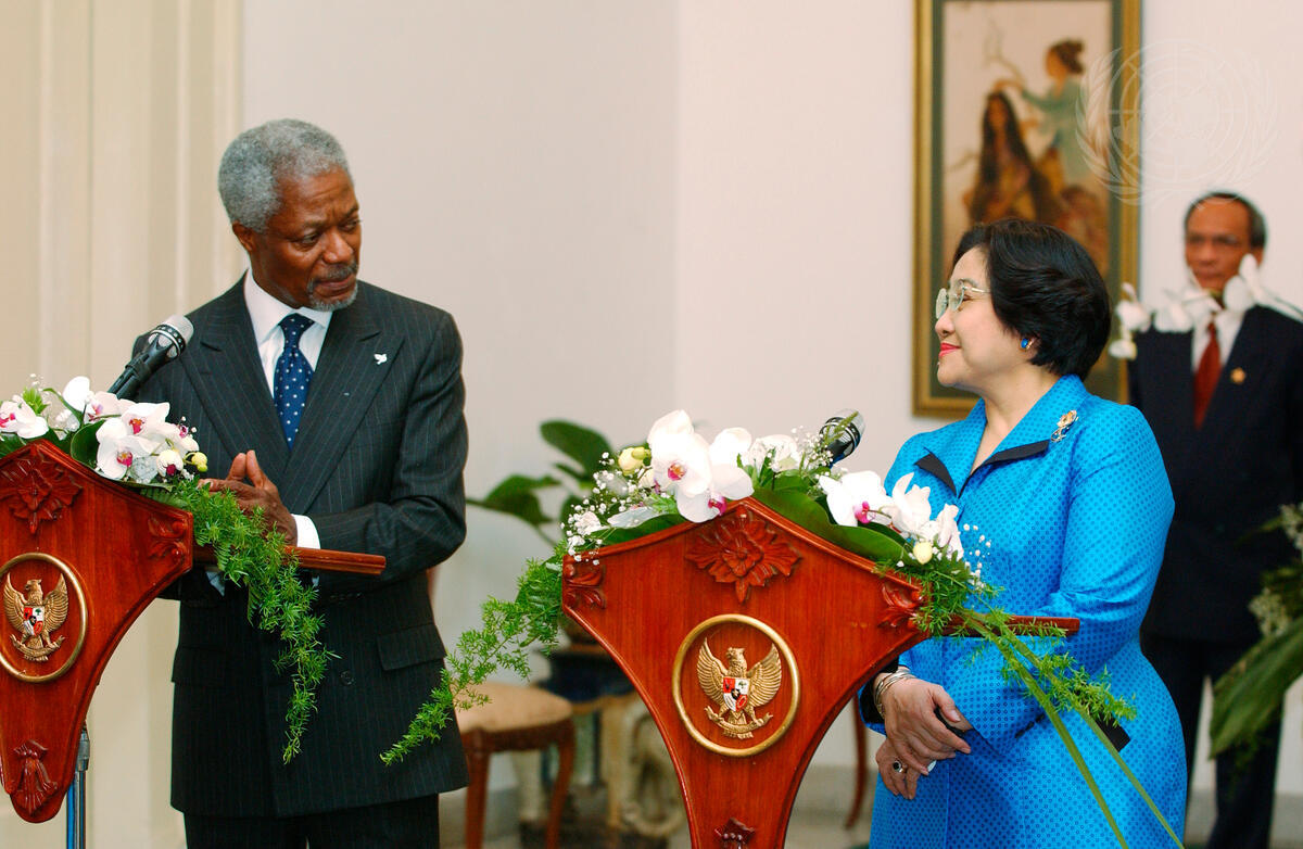Secretary-General Kofi Annan (left) meeting with President Megawati Sukarnoputri of Indonesia, at the Presidential Palace in Jakarta.