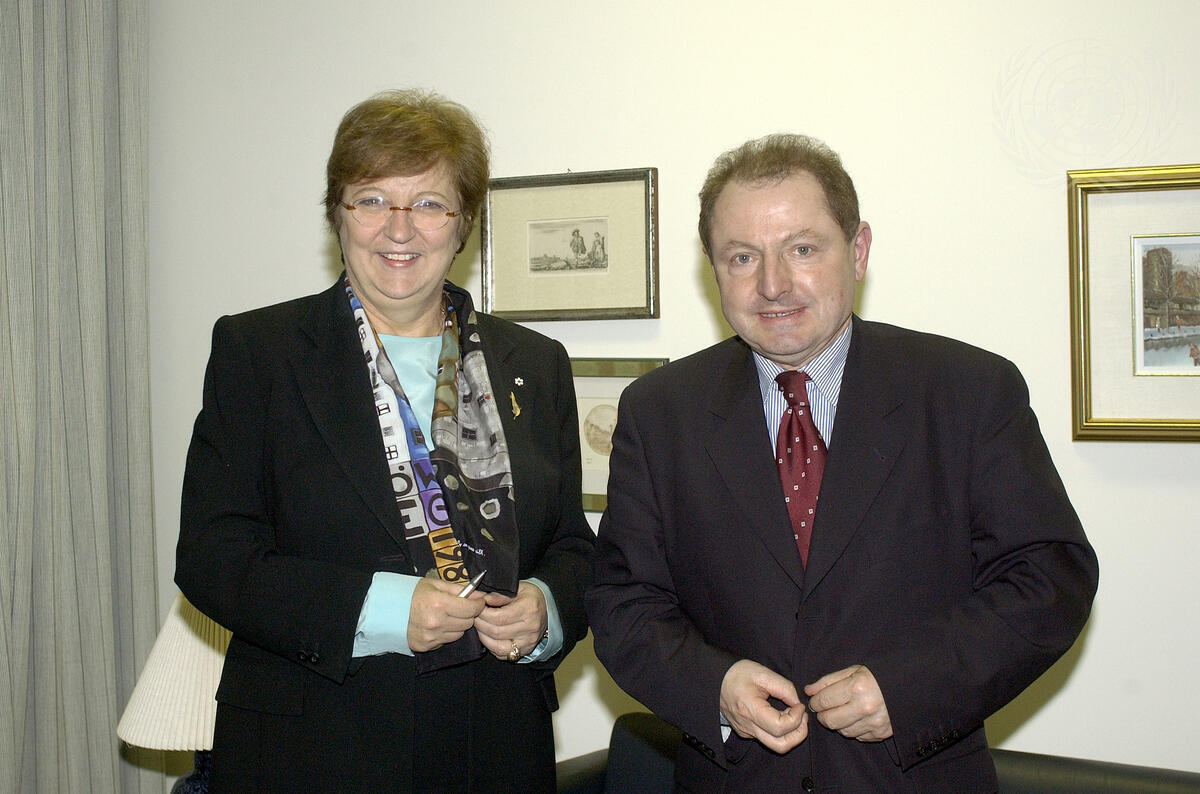 Deputy Secretary-General Louise Fréchette (left) meets with Tadeusz Iwinski, Secretary of State in the Office of the Prime Minister of the Republic of Poland.