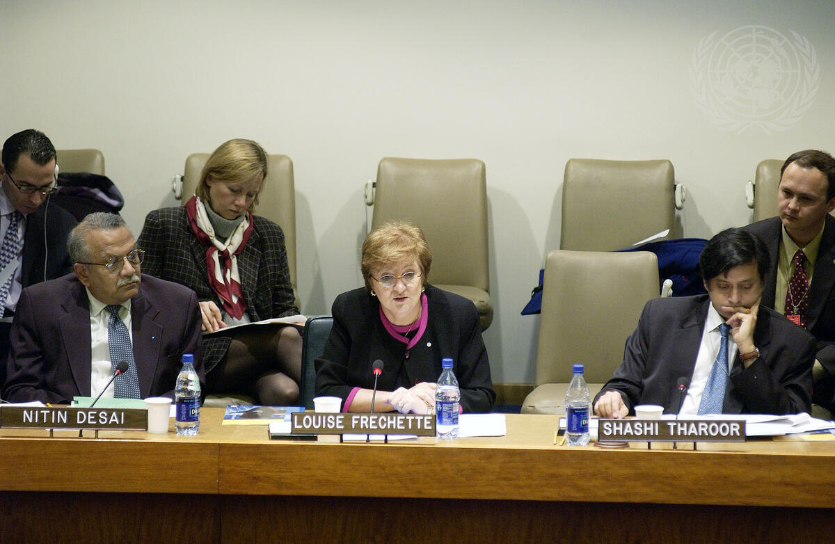 Louise Fréchette (centre), Deputy Secretary-General, addresses the Freshwater Panel Discussion: "The Challenges of Freshwater: A Dialogue" on the Occasion of the Launch of the International Year of Freshwater.