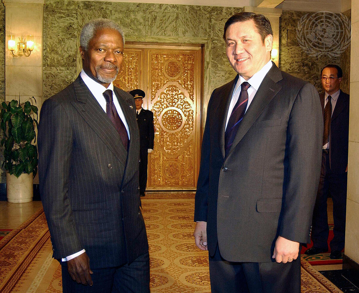 Secretary-General Kofi Annan (left) meets with Nambar Enkhbayar, Prime Minister of Mongolia.