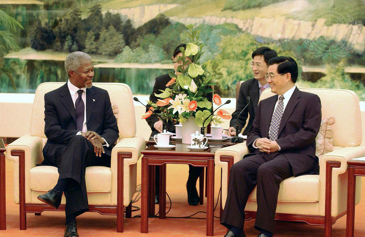 Secretary-General Kofi Annan (left) meets with Hu Jintao, Vice President of the People's Republic of China.