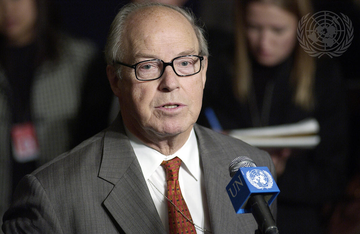 Hans Blix, Executive Chairman of the UN Monitoring, Verification and Inspection Commission (UNMOVIC), briefs correpondents today at the Security Council stakeout.
