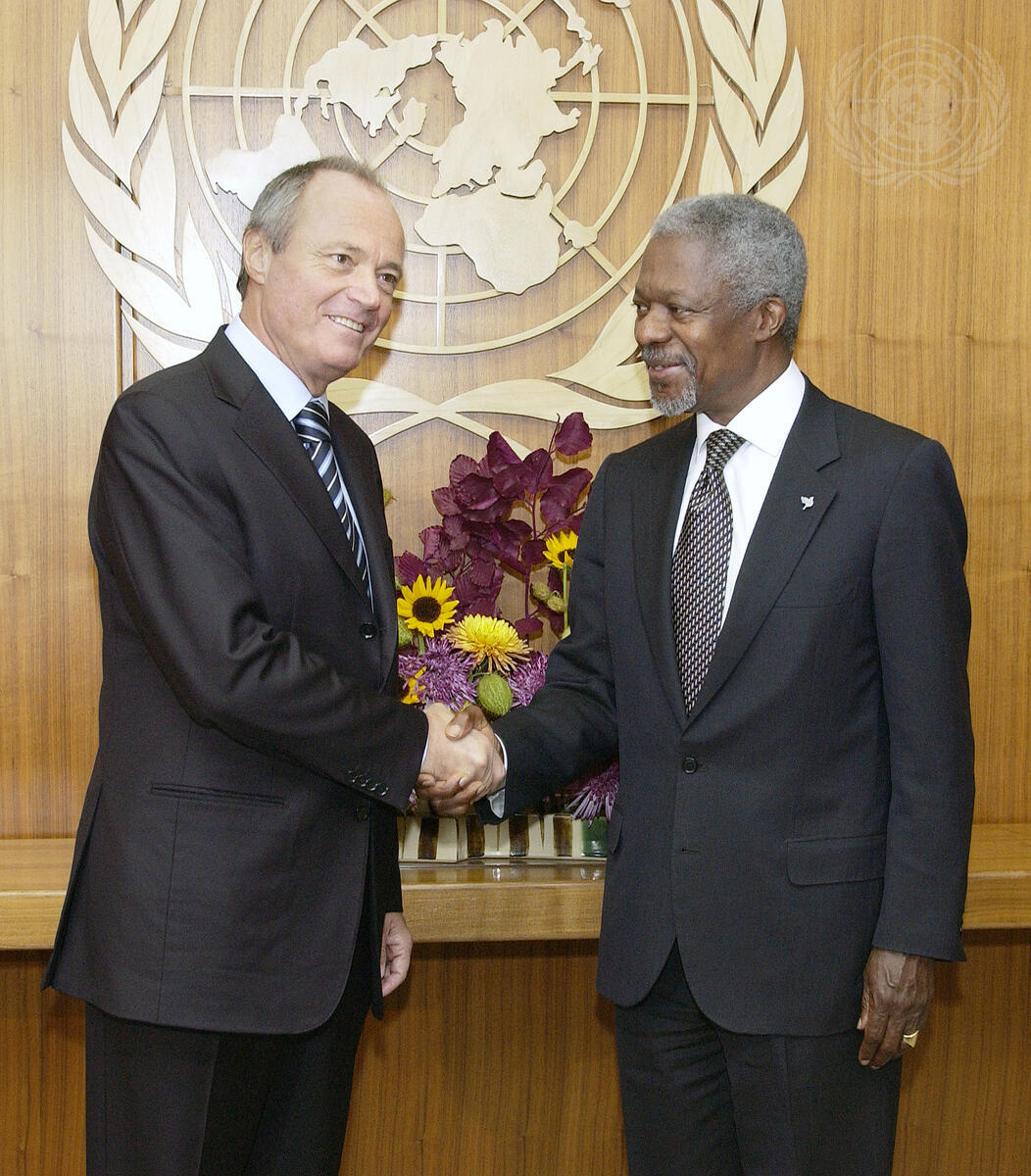 Secretary-General Kofi Annan (right) meets with Peter Medgyessy, Prime Minister of the Republic of Hungary.
