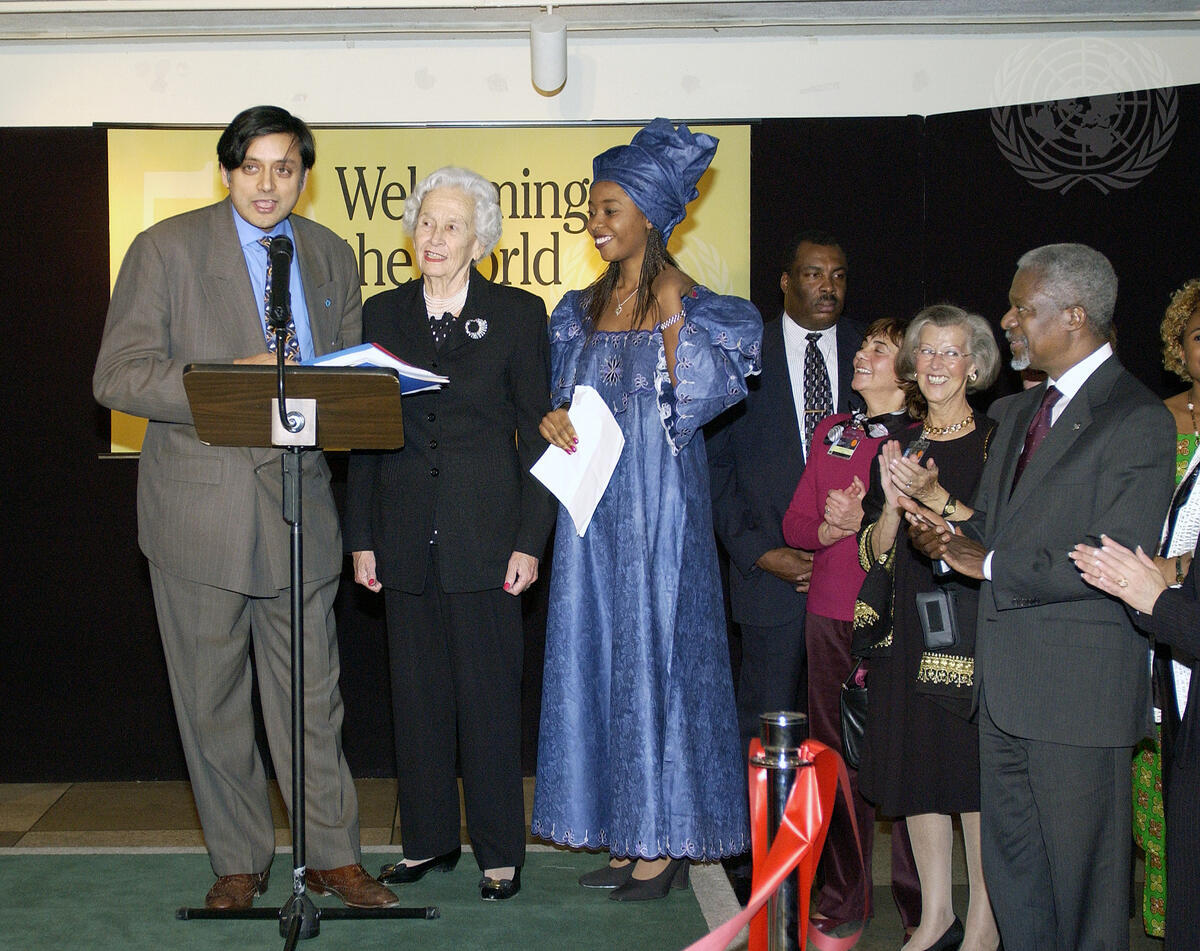 Secretary-General Kofi Annan (right) and Shashi Tharoor (left), Under-Secretary-General for Communications and Public Information, attends the opening.