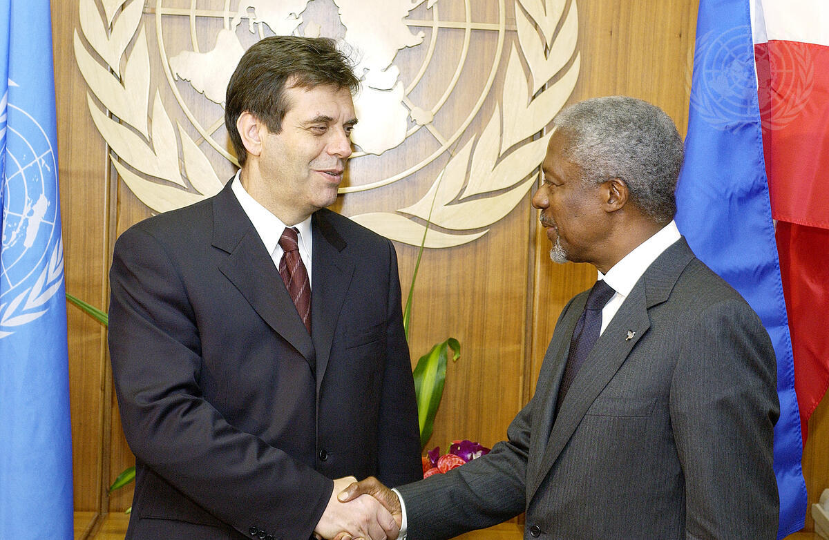Secretary-General Kofi Annan (right) meets with Vojislav Kostunica, President of the Federal Republic of Yugoslavia.