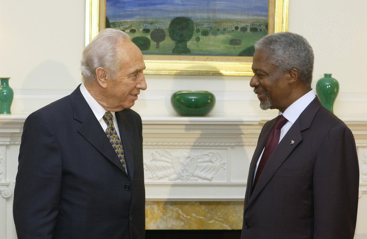 Secretary-General Kofi Annan (right) meets with Shimon Peres, Minister for Foreign Affairs of Israel.