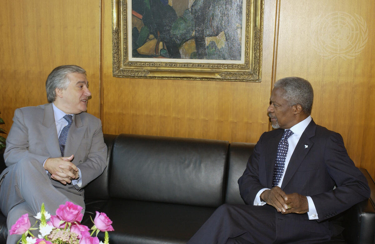 Secretary-General Kofi Annan (right) meeting with Francisco Seixas da Costa, Permanent Representative of Portugal to the United Nations.
