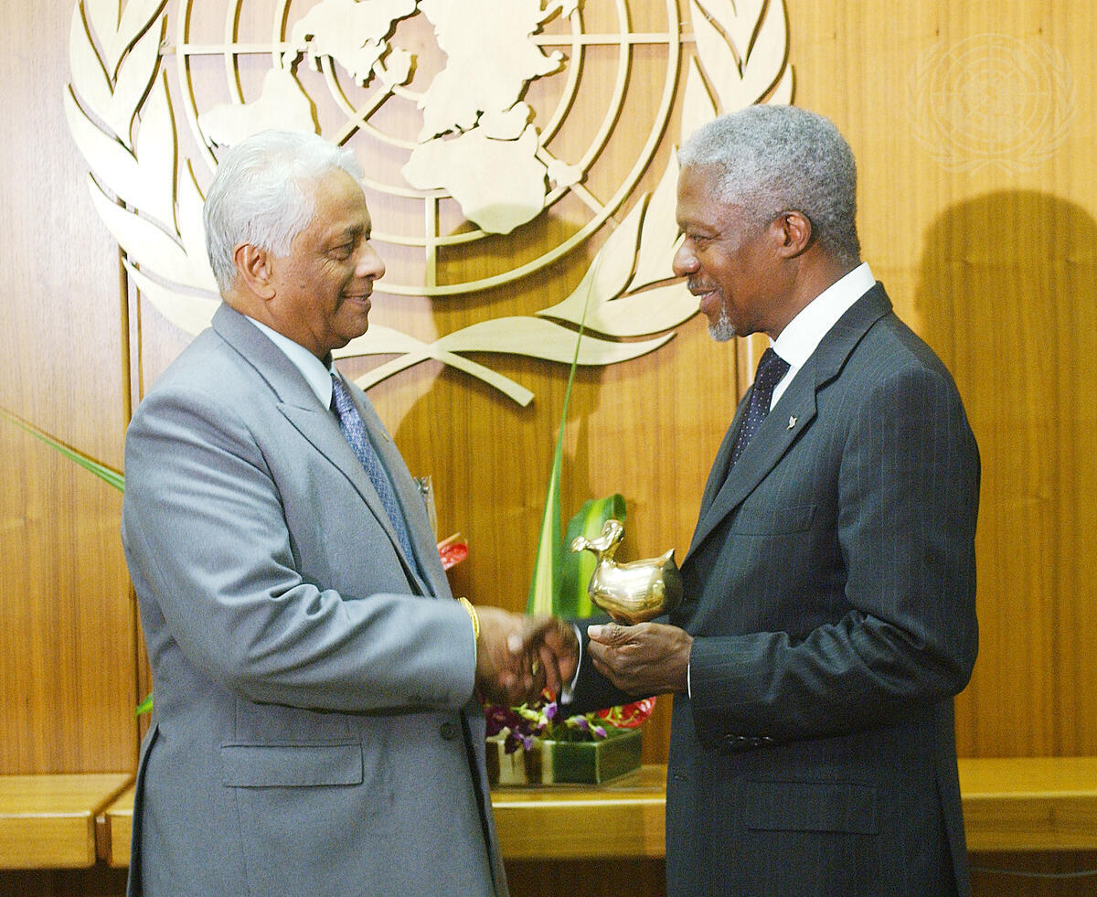 Secretary-General Kofi Annan (right) meets with Anerood Jugnauth, Prime Minister of Mauritius.