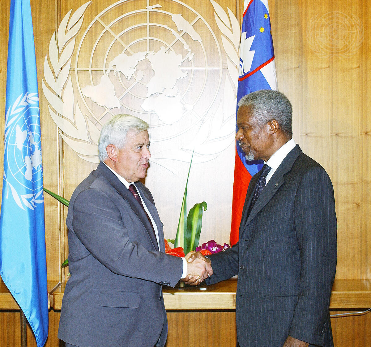 Secretary-General Kofi Annan (right) meets with Milan Kucan, President of Slovenia.