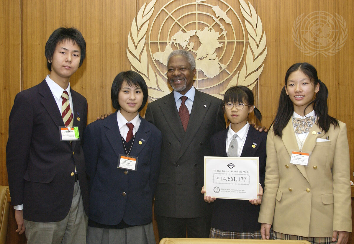 Secretary-General Kofi Annan (centre) meets with Peace Messenger Delegation from Yokohama, Japan.