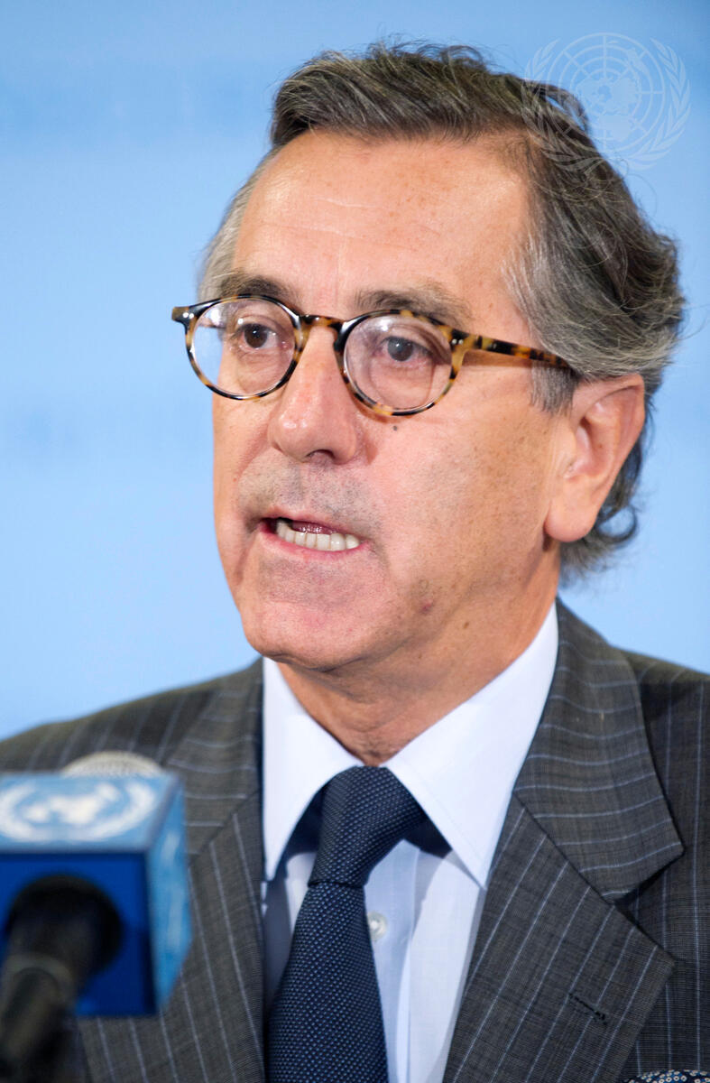 Néstor Osorio, Permanent Representative of Colombia to the UN and President of the Security Council for July, briefs correspondents, following the Security Council’s unanimous decision to extend the mandate of the UN Supervision Mission in Syria (UNSMIS) for thirty days.