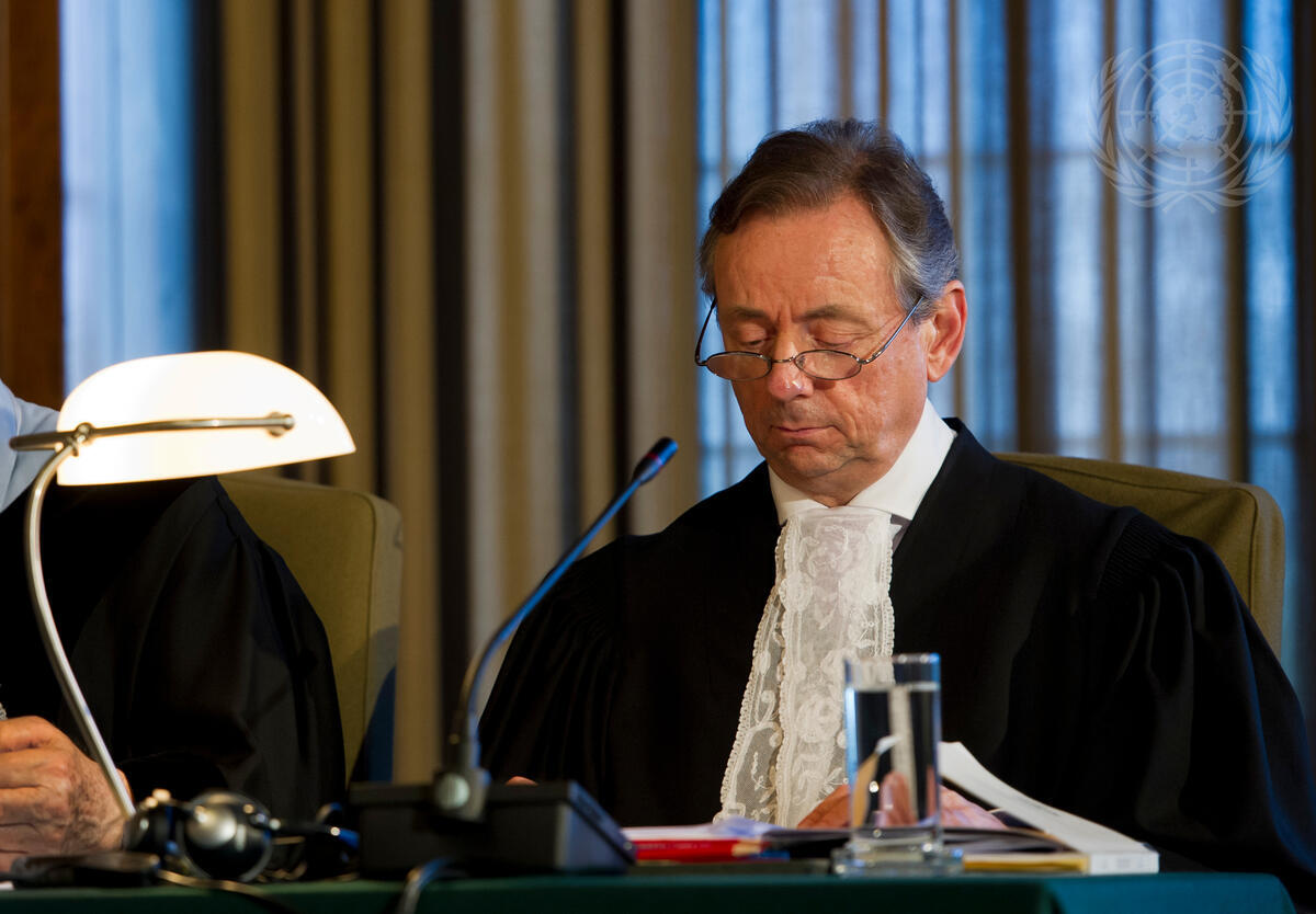The Registrar of the International Court of Justice (ICJ), Philippe Couvreur, during the reading of the Court’s Judgment in the case concerning Questions relating to the Obligation to Prosecute or Extradite (Belgium v. Senegal). The Court ruled that, in compliance with its obligations under the Convention Against Torture, Senegal must prosecute or extradite former Chadian President Hissène Habré.