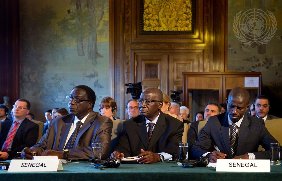 Members of the Delegation of Senegal during the reading of the Judgment of the International Court of Justice (ICJ) in the case concerning Questions relating to the Obligation to Prosecute or Extradite (Belgium v. Senegal). The Court ruled that, in compliance with its obligations under the Convention Against Torture, Senegal must prosecute or extradite former Chadian President Hissène Habré.