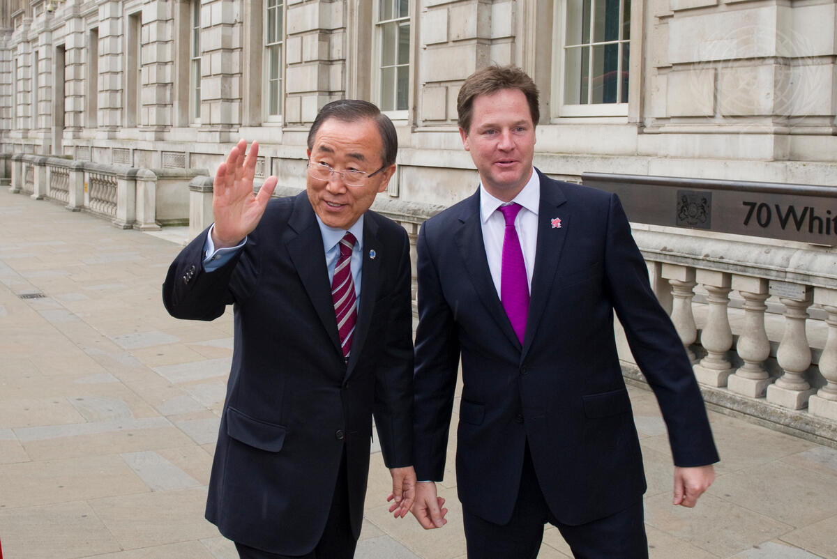 Secretary-General Ban Ki-moon (left) with Nick Clegg, Deputy Prime Minister of the United Kingdom. The Secretary-General is in London for the opening of the 2012 Summer Olympic Games.