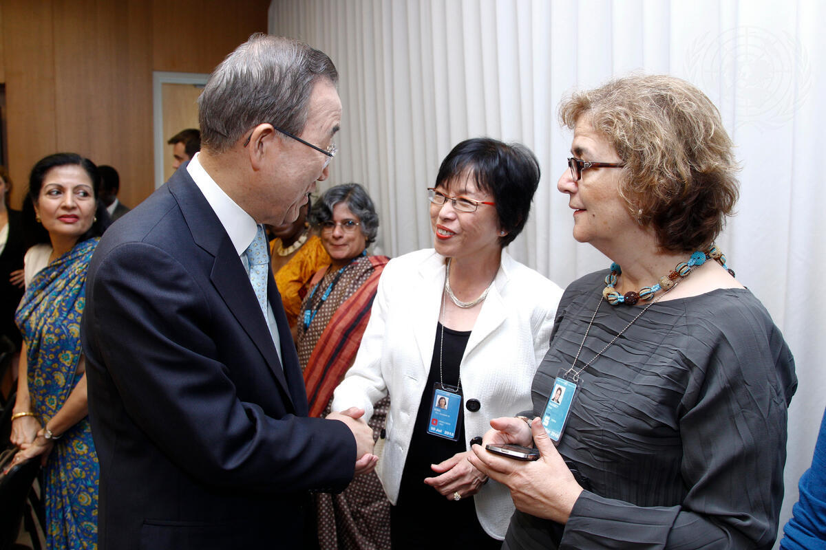 Secretary-General Ban Ki-moon (left) greets participants at today's meeting.