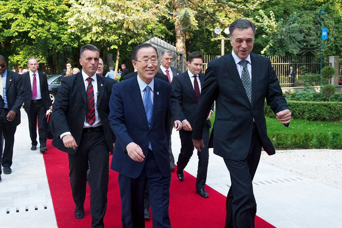 Secretary-General Ban Ki-moon (centre) meets with Filip Vujanovic, President of Montenegro.