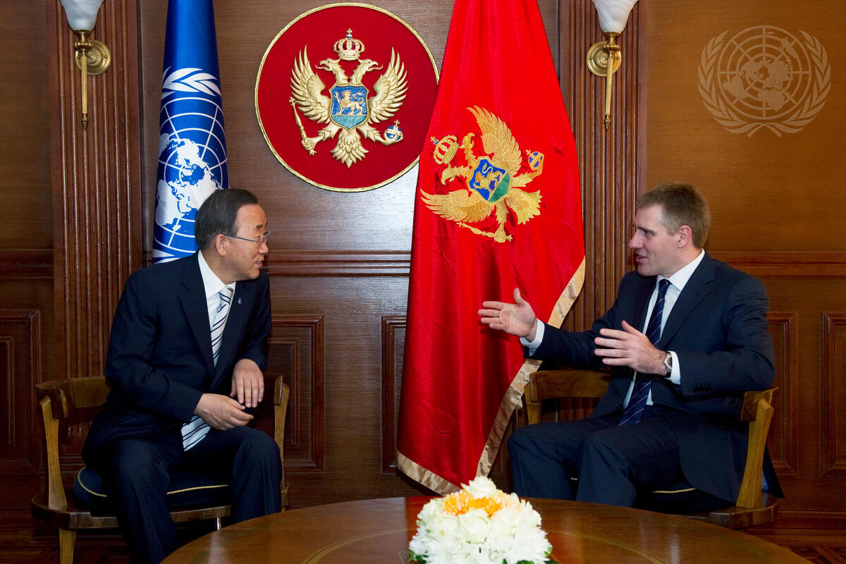 Secretary-General Ban Ki-moon (left) meets with Igor Lukšic, Prime Minister of Montenegro.