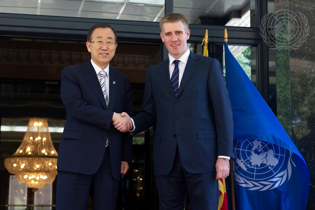 Secretary-General Ban Ki-moon (left) meets with Igor Lukšic, Prime Minister of Montenegro.