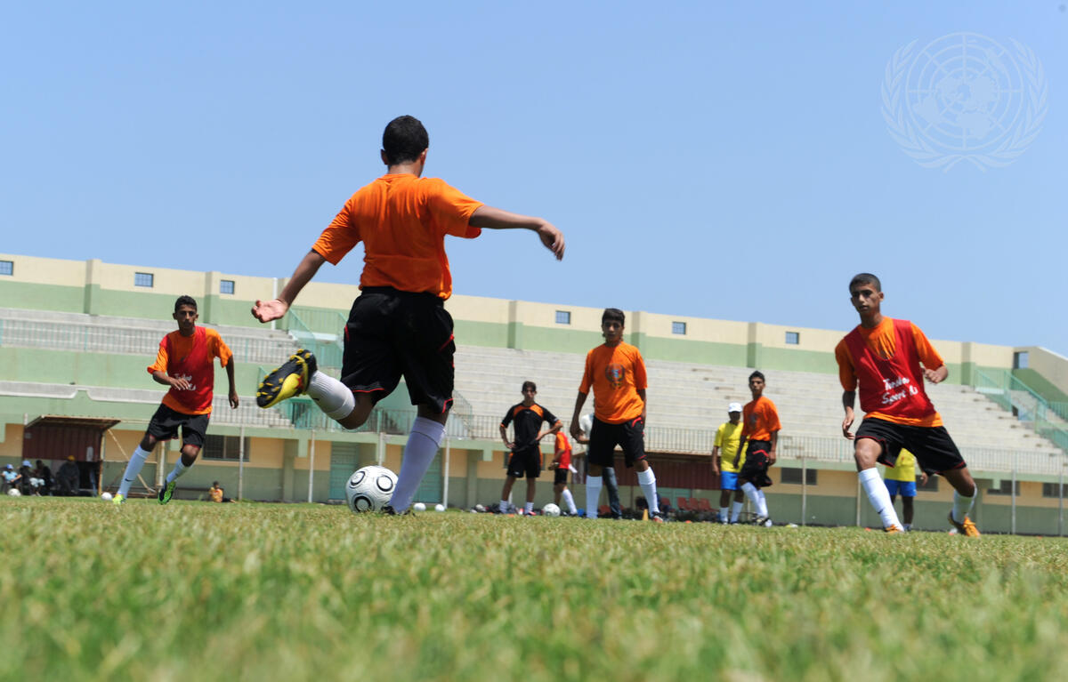 Children in Gaza train for the Norway Cup, the largest international youth soccer tournament, held annually in Oslo since 1972. Put together by the UN Relief and Works Agency for Palestine Refugees in the Near East (UNRWA), UNRWA Football Team has members, all under the age of 14, selected from UNRWA Prep Boy Schools throughout Gaza Strip. The team won the bronze cup in 2010.