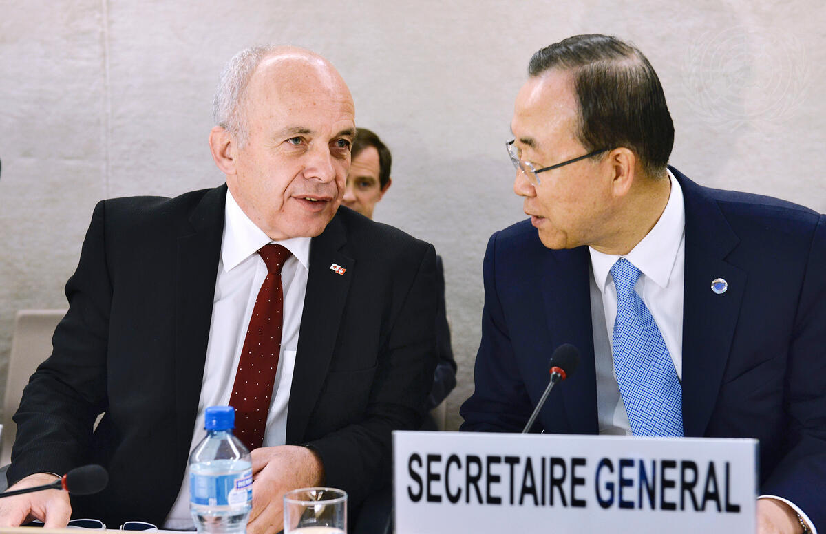Secretary-General Ban Ki-moon (right) with Ueli Maurer, President of Switzerland, at the opening of the high-level segment of the Economic and Social Council’s (ECOSOC) 2013 substantive session.