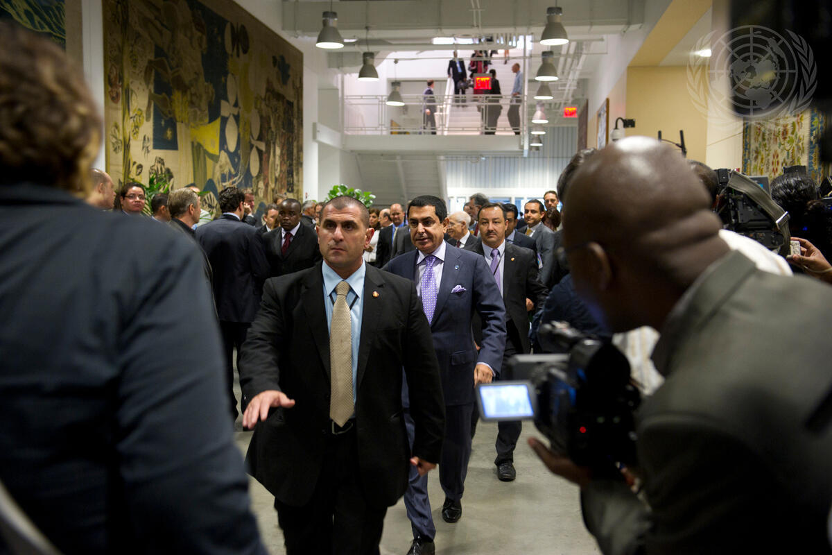 Nassir Abdulaziz Al-Nasser (centre), President of the sixty-sixth session of the General Assembly, arrives for the high-level meeting on Libya, convened by the UN Secretary-General on the sidelines of the General Assembly session.
