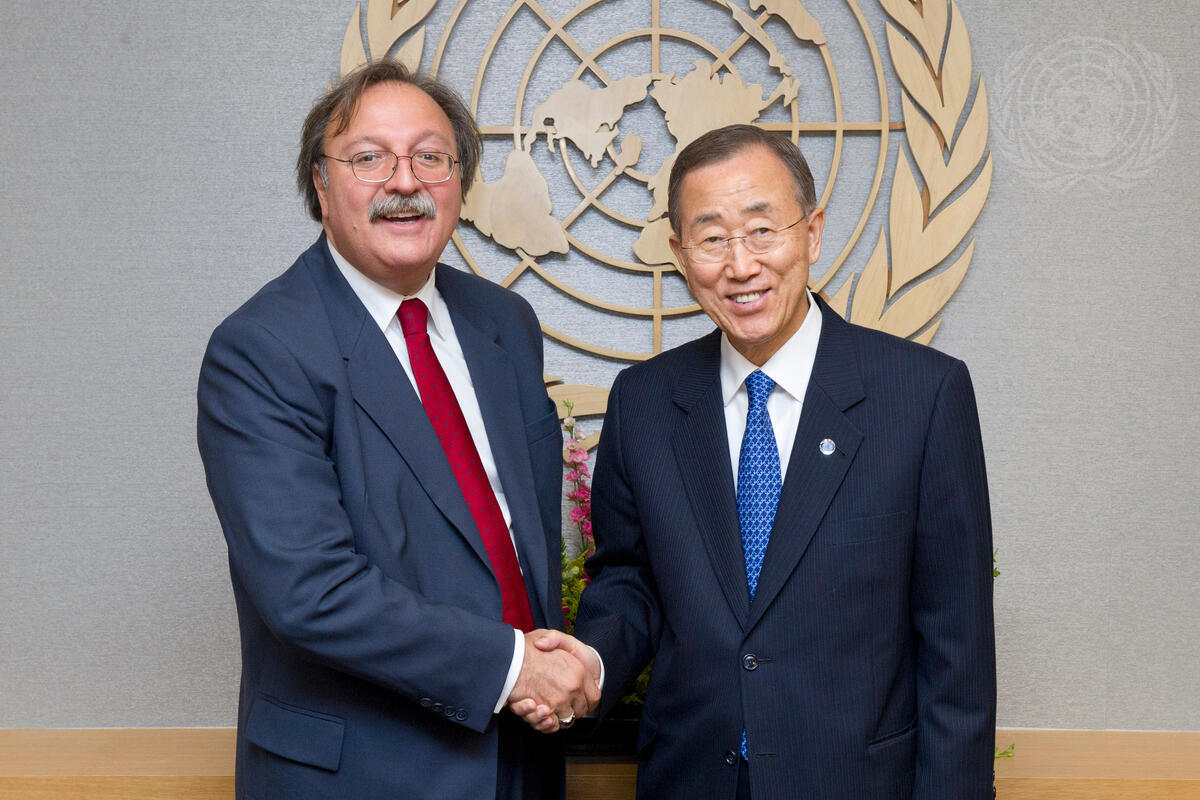 Secretary-General Ban Ki-moon (right) meets with Grigol Vashadze, Minister for Foreign Affairs of Georgia.