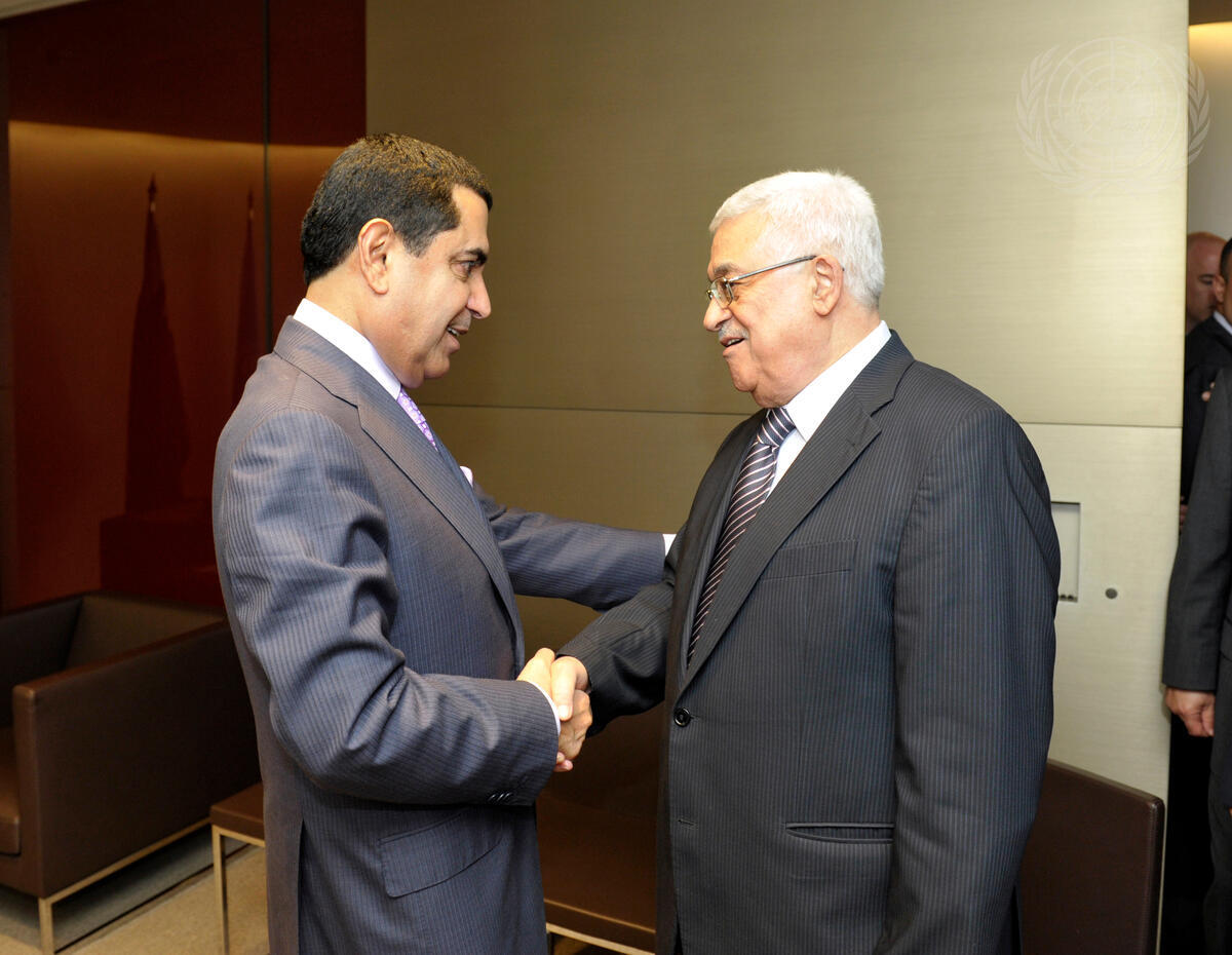 Nassir Abdulaziz Al-Nasser (left), President of the sixty-sixth session of the General Assembly, meets with Mahmoud Abbas, President of the Palestinian National Authority.