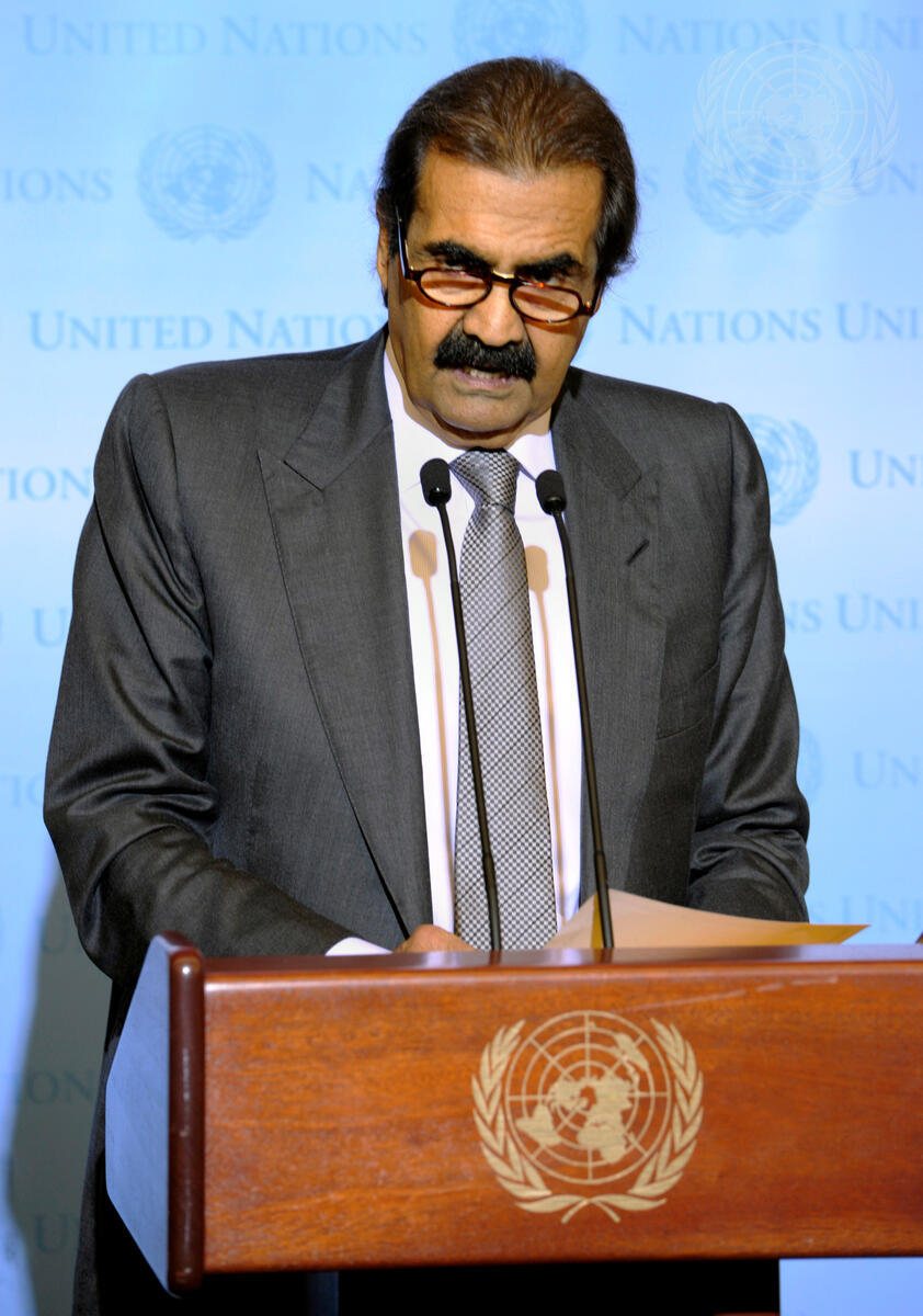 Sheikh Hamad bin Khalifa Al-Thani, Amir of the State of Qatar, addresses the high-level meeting on Libya convened by the UN Secretary-General, on the sidelines of the General Assembly session.