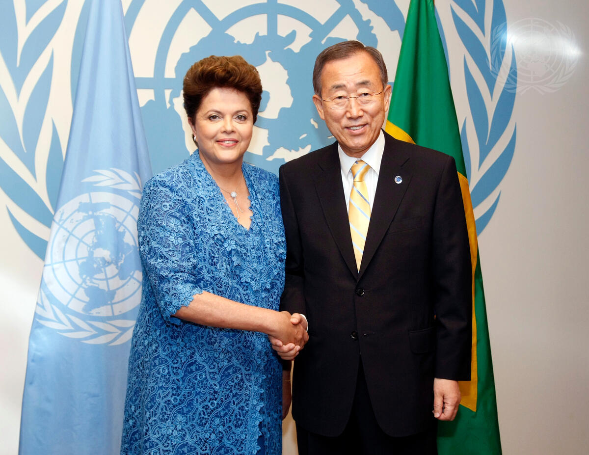 Secretary-General Ban Ki-moon (right) meets with Dilma Vana Rousseff, President of Brazil.