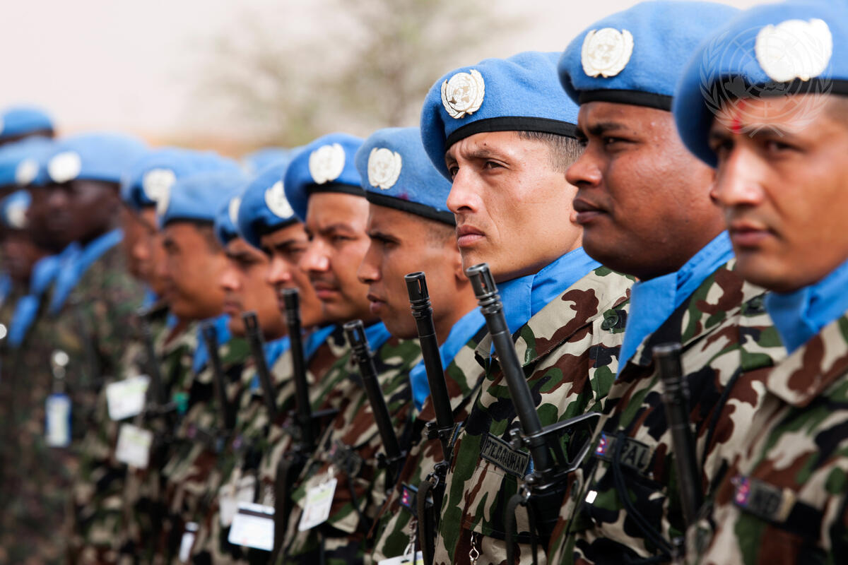 Nepalese peacekeepers with the African Union-UN Hybrid Operation in Darfur (UNAMID) stand in formation during a ceremony commemorating the International Day of UN Peacekeepers. On the annual day, the mission remembered its own 26 peacekeepers killed in the line of duty over the past year.