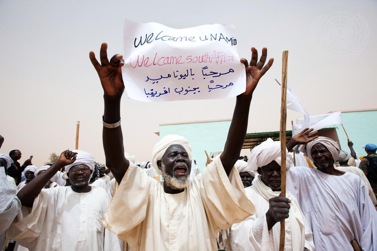 Residents of Forog, North Darfur, welcome the arrival of Aïchatou Mindaoudou Souleymane, Deputy Special Representative for Political Affairs at the African Union-UN Hybrid Operation in Darfur (UNAMID), who will officially open an UNAMID-sponsored clinic and three schools in the area. This corner of North Darfur, currently controlled by the Abdul Wahid faction of the rebel Sudan Liberation Army (SLA), is reported to suffer a serious shortage of water and medicines.