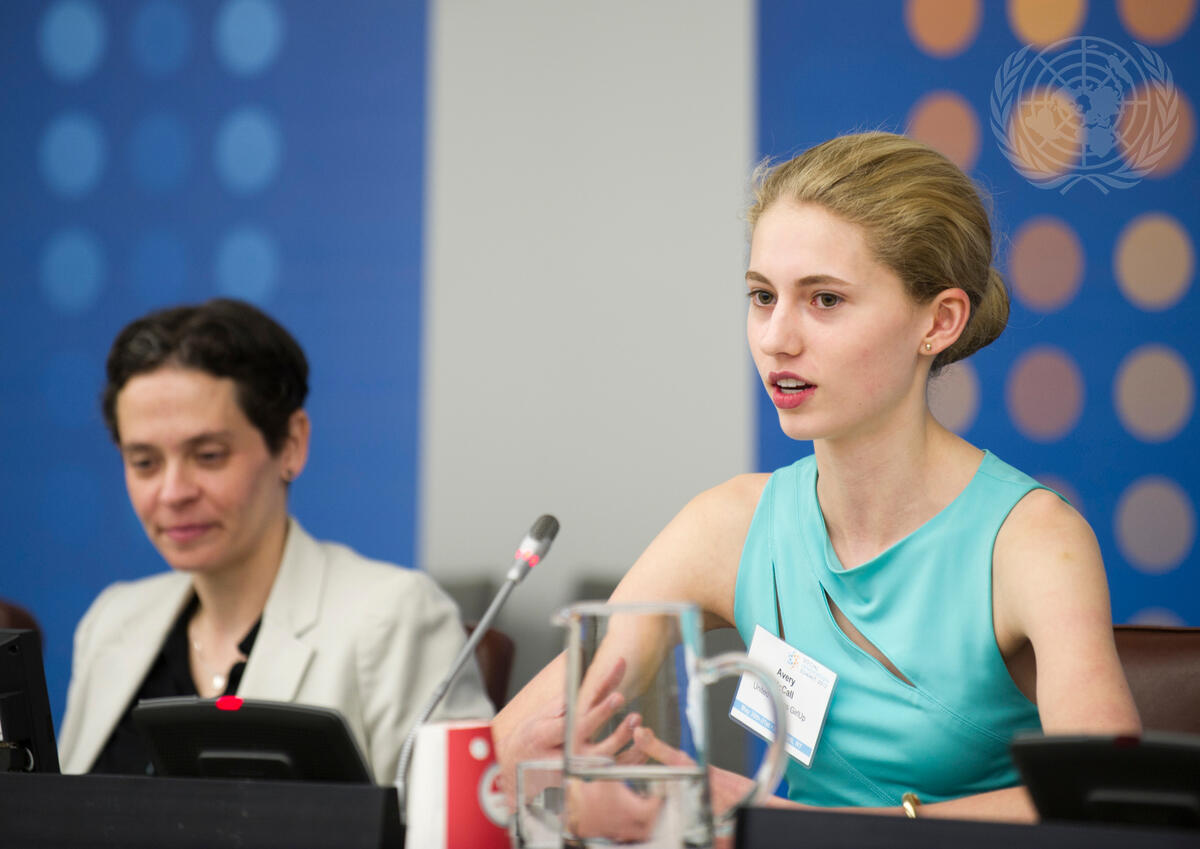 Avery Winthrop McCall (right), Teen Advisor at Girl Up, speaks at the Social Innovation Summit 2012’s event on “Empowering Women and Girls”.
