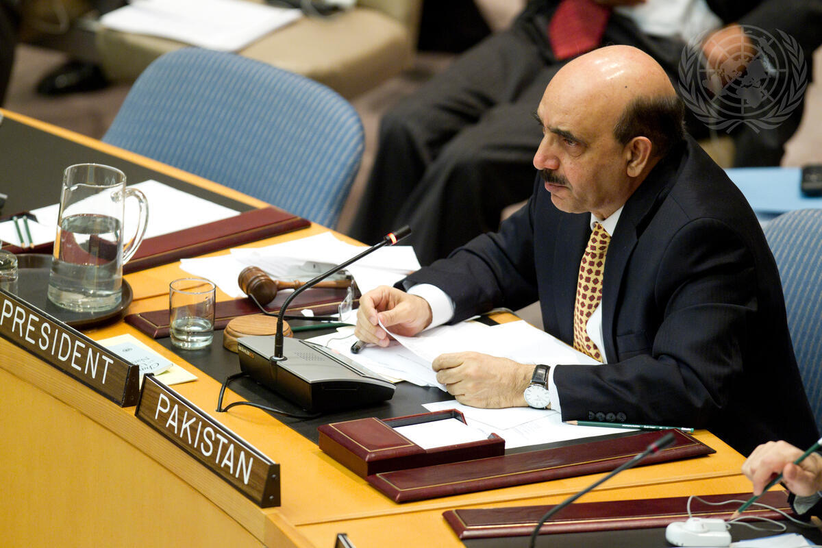 Mohammad Masood Khan, Permanent Representative of Pakistan to the UN and President of the Security Council for the month of January, addresses the Council meeting on the situation in the Central African Republic.