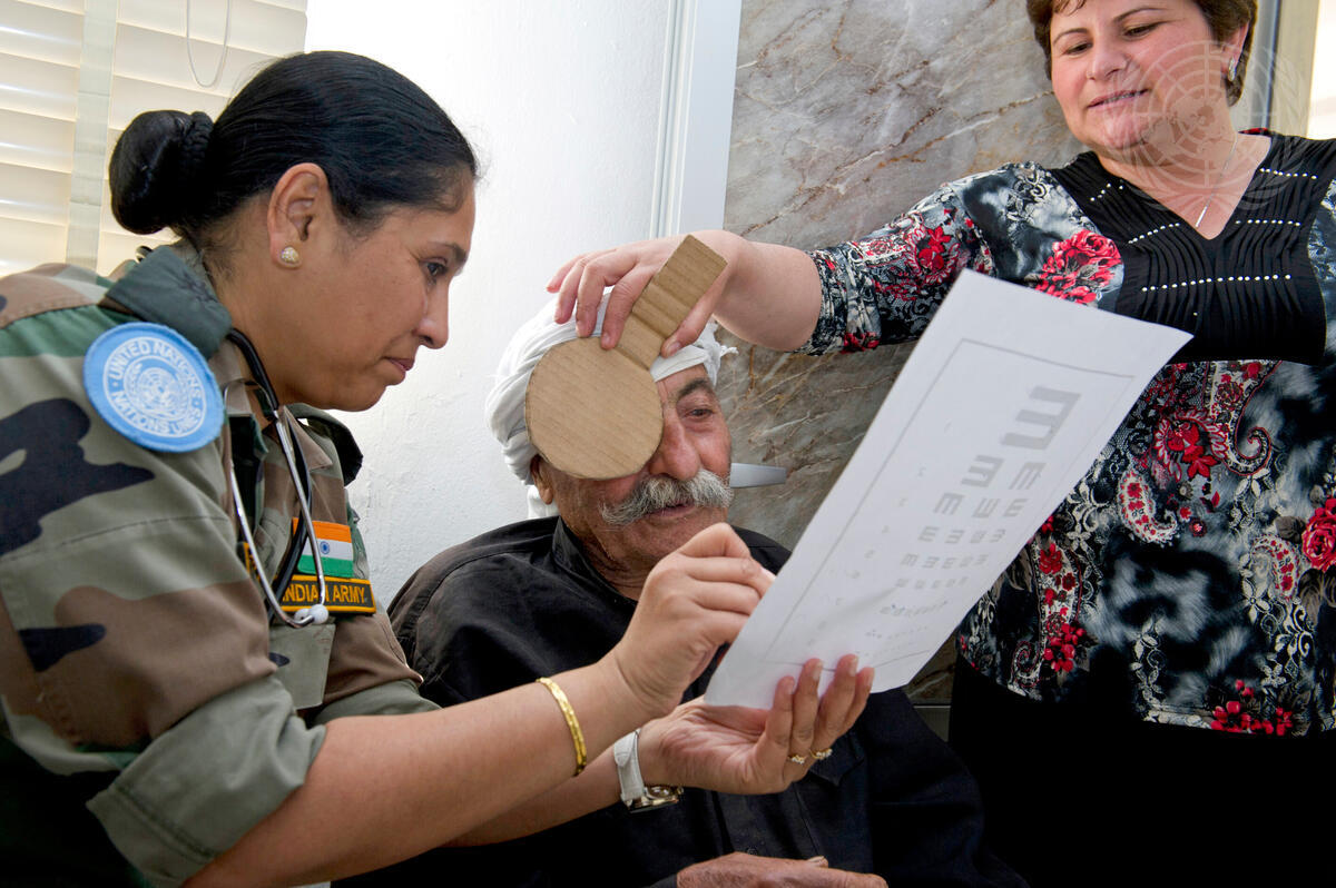 An ophthalmologist from the Indian contingent of the UN Interim Force in Lebanon (UNIFIL) examines a patient in a village close to the contingent’s headquarters in south Lebanon, at a mobile clinic set up by the contingent.