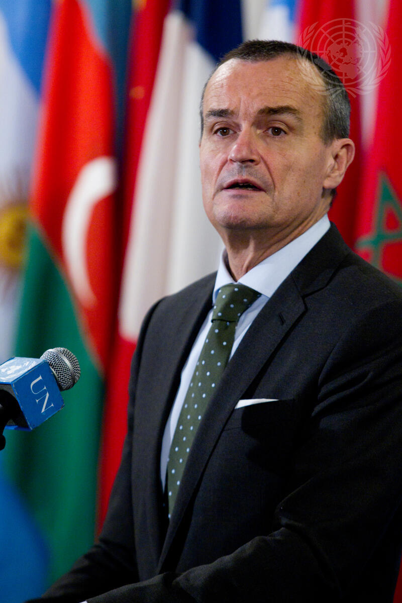 Gérard Araud, Permanent Representative of France to the UN, speaks to journalists following closed-door Security Council consultations on the situation in Mali.