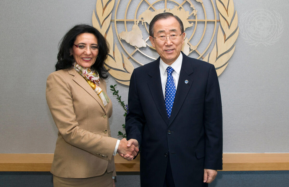 Secretary-General Ban Ki-moon (right) meets with Gioconda Ubeda Rivera, Secretary-General of the Agency for the Prohibition of Nuclear Weapons in Latin America and the Caribbean (OPANAL).