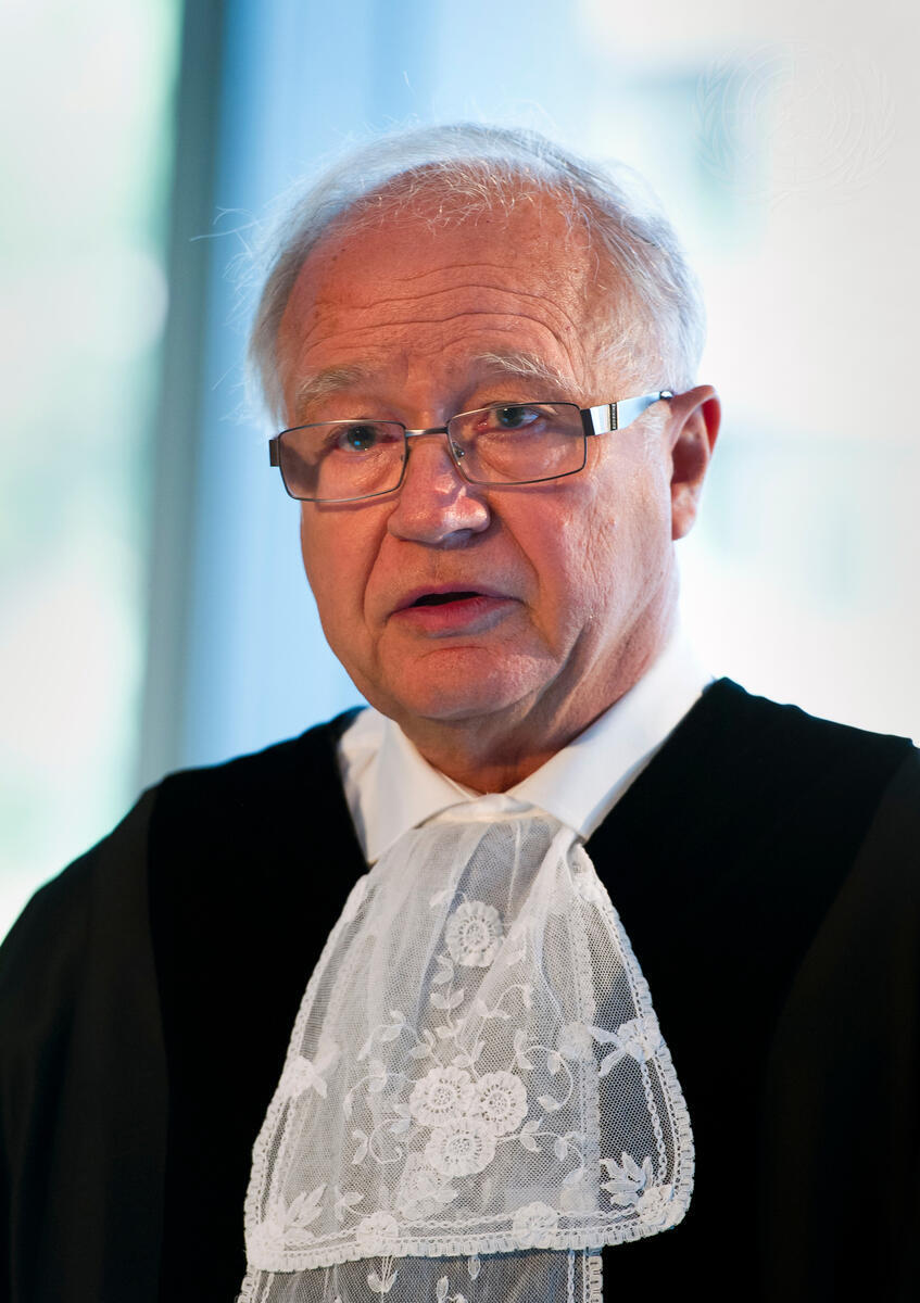 Yves Daudet, Judge ad hoc chosen by Burkina Faso, makes a solemn declaration at the opening of the International Court of Justice (ICJ)’s hearings in the case concerning the Frontier Dispute (Burkina Faso/Niger). This session took place, exceptionally, in the auditorium of The Hague Academy of International Law.