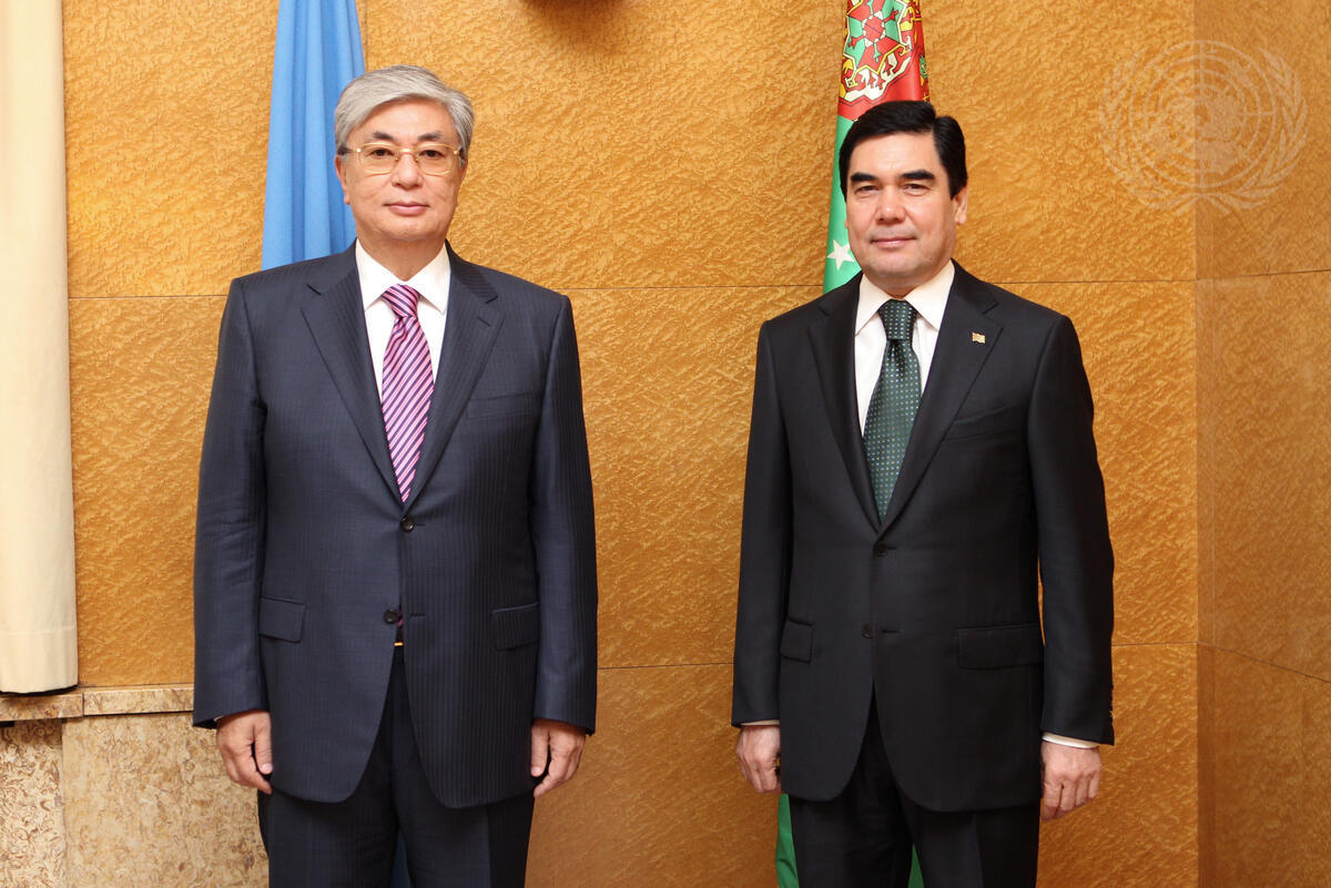 Kassym-Jomart Tokayev (left), Director-General of the United Nations Office at Geneva (UNOG), meets with Gurbanguly Berdimuhamedov, President of Turkmenistan.