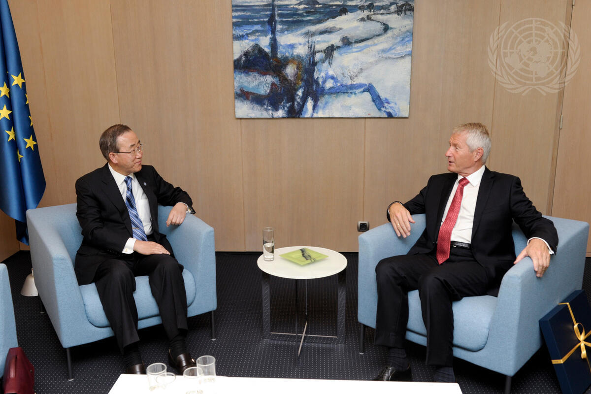 Secretary-General Ban Ki-moon (left) meets with Thorbjørn Jagland, Secretary General of the Council of Europe, at the Palais de l’Europe, the seat of the Council, in Strasbourg, France.