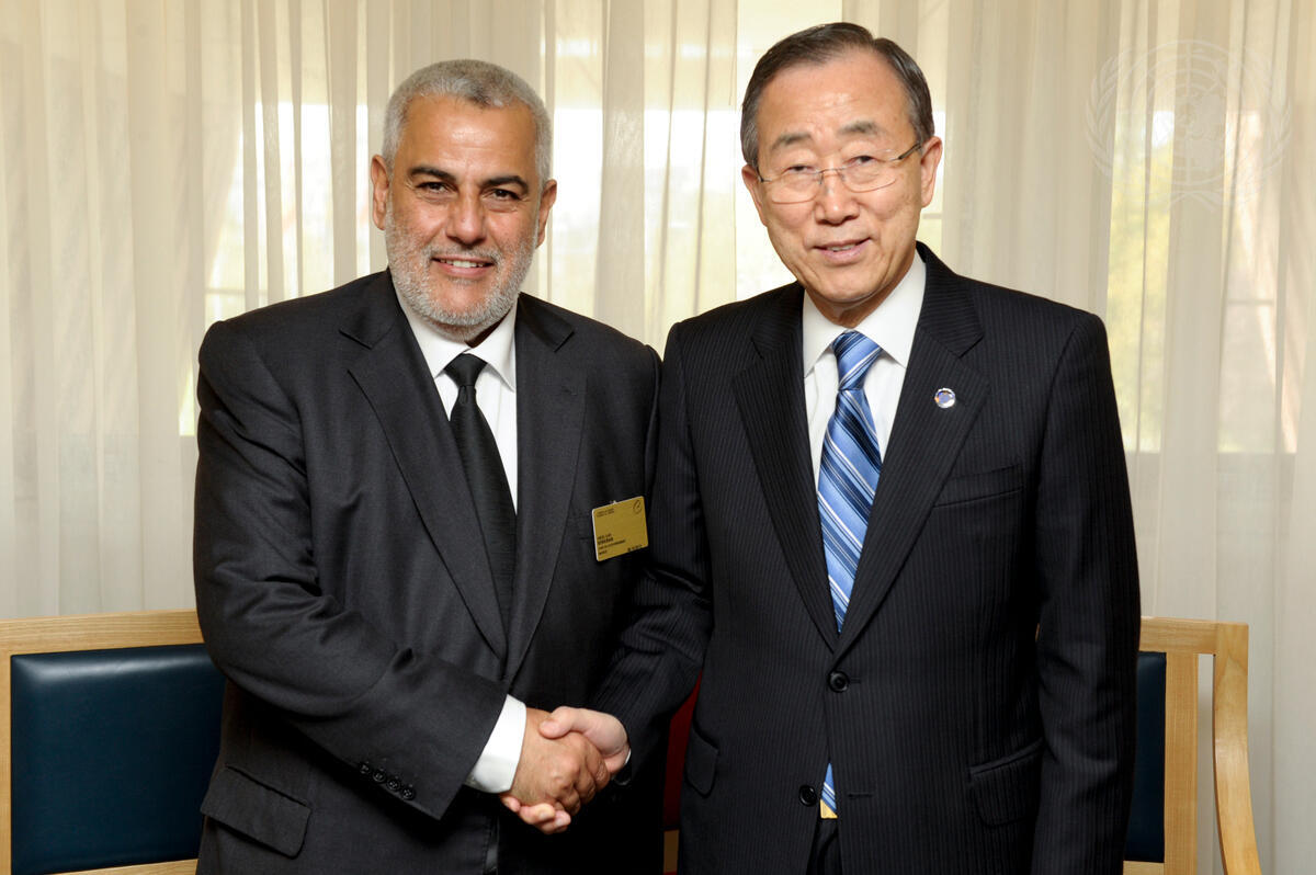 Secretary-General Ban Ki-moon (right) meets with Abdelilah Benkirane, Prime Minister of the Kingdom of Morocco, at the Palais de l’Europe in Strasbourg, France.