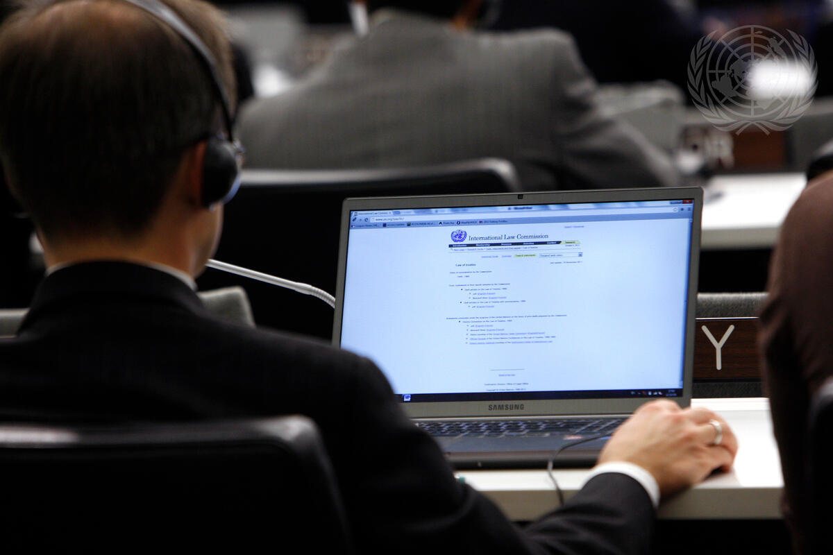 A delegate working with his laptop computer, at the first meeting of the General Assembly’s Sixth Committee (Legal) for the Assembly’s sixty-seventh session.