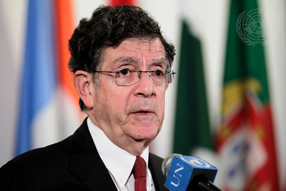 Gert Rosenthal, Permanent Representative of Guatemala to the UN and President of the Security Council for the month of October, speaks to correspondents following the Council’s closed meeting on the situation in the Democratic Republic of the Congo (DRC).