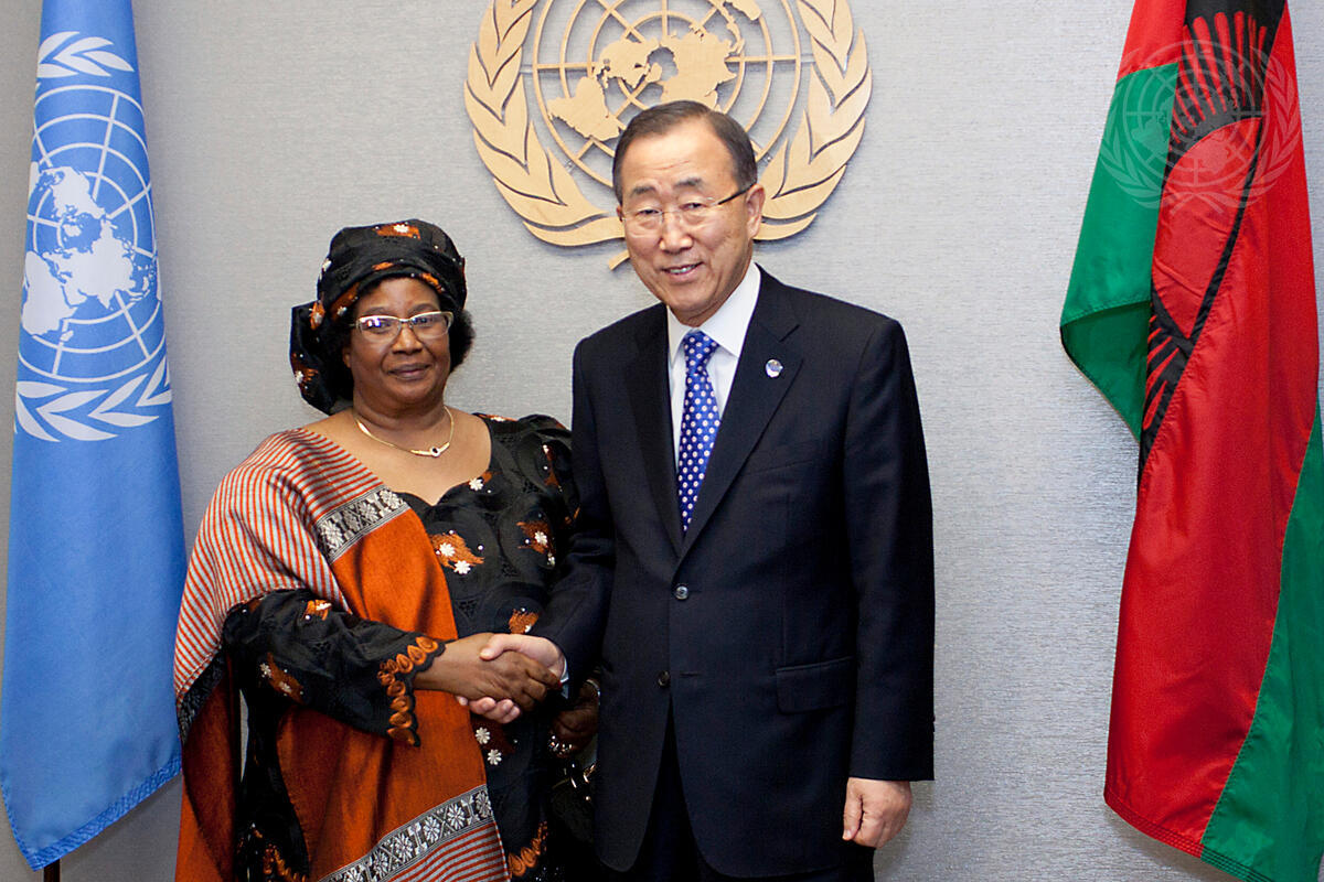 Secretary-General Ban Ki-moon (right) meets with Joyce Hilda Mtila Banda, President of Malawi.